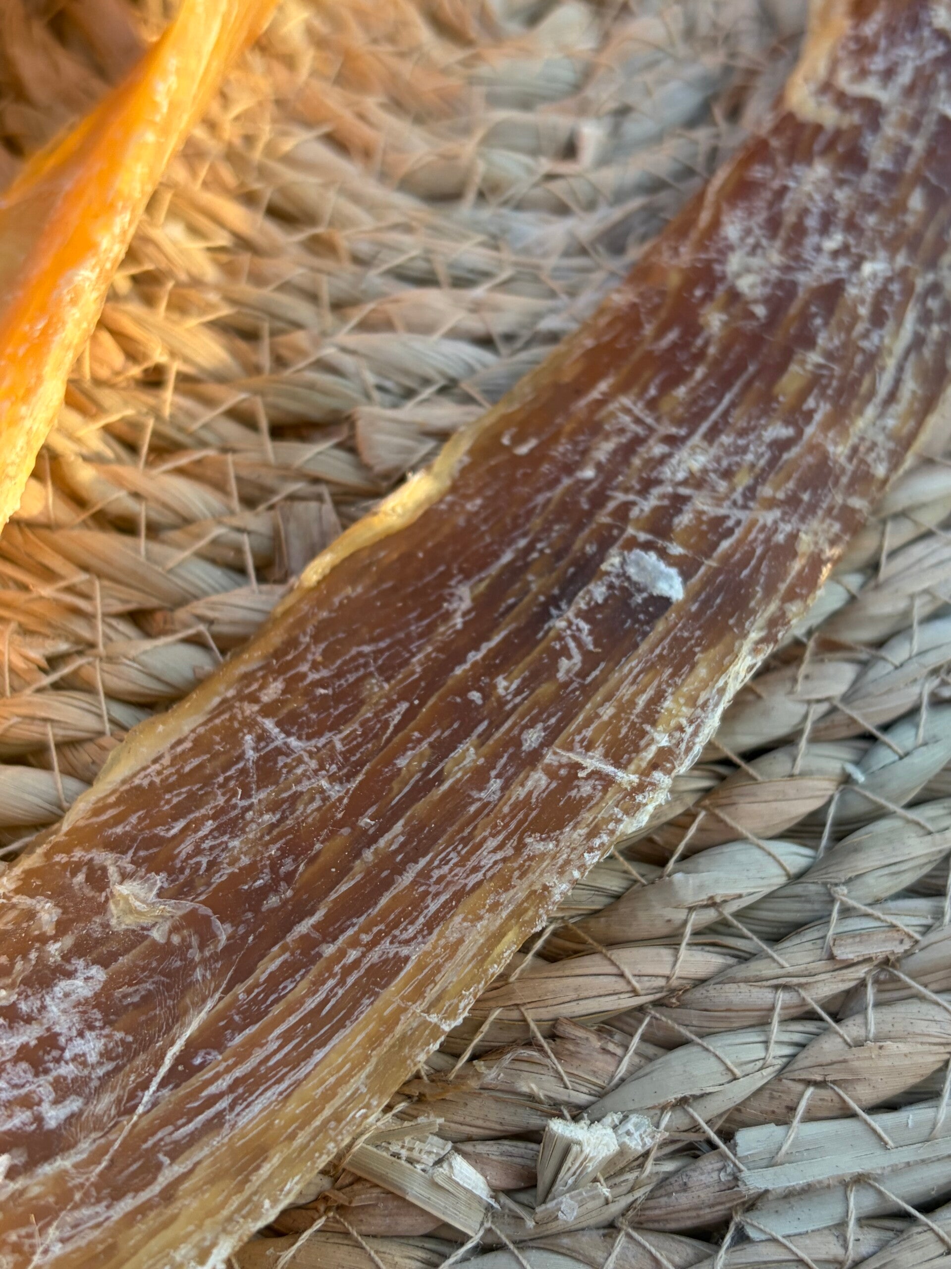 De nekspier is 100% natuurlijk en wordt langzaam gedroogd, waardoor de smaak en voedingsstoffen optimaal behouden blijven. De stevige en taaie structuur zorgt niet alleen voor langdurig kauwplezier, maar helpt ook bij het reinigen van het gebit en het verminderen van tandplak.