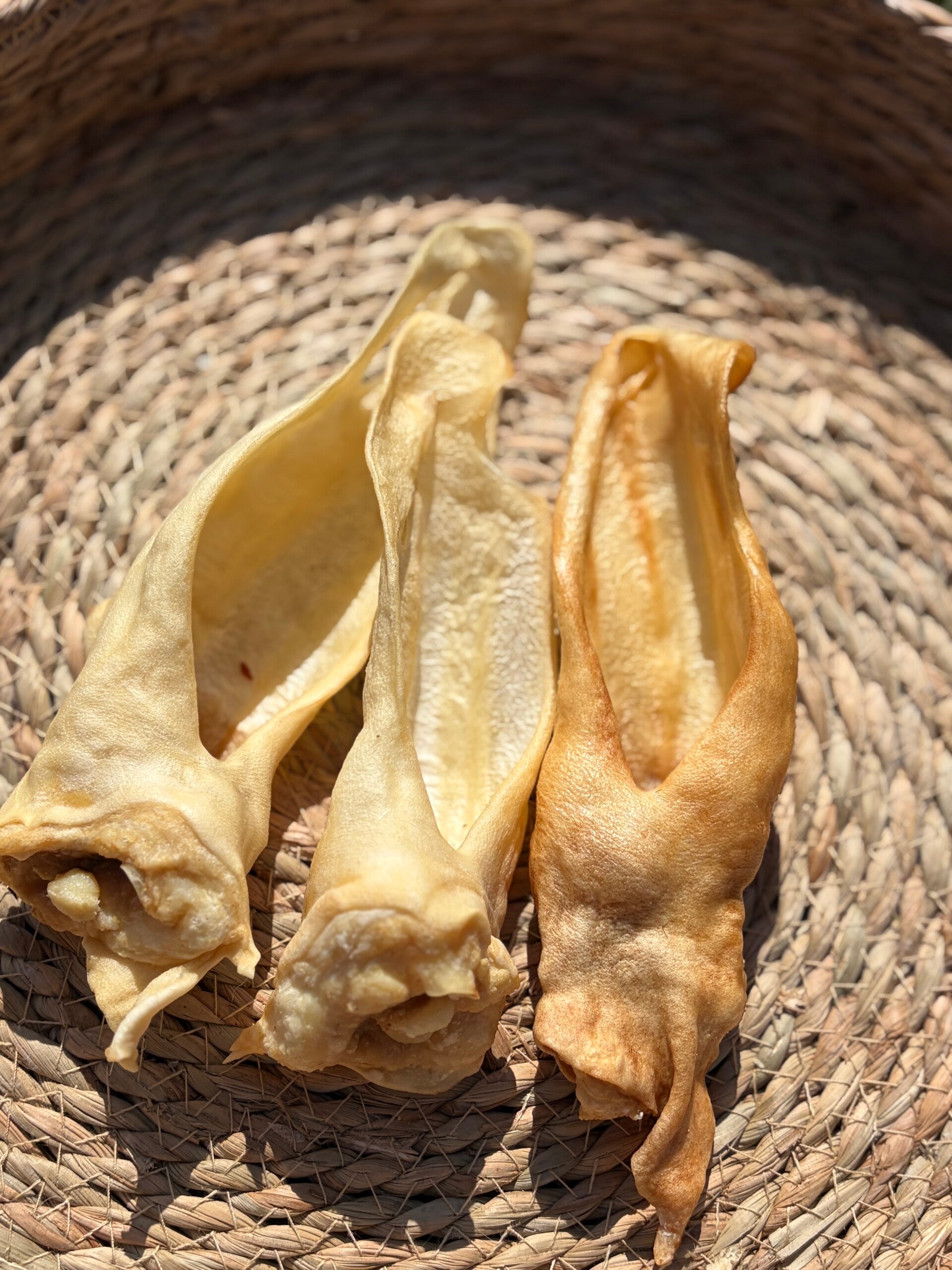 Deze snack bevat geen kunstmatige toevoegingen en is rijk aan natuurlijke eiwitten, waardoor het een gezonde en verantwoorde traktatie is voor honden van alle rassen. Geitenoren zijn licht verteerbaar en daardoor geschikt voor honden met een gevoelige maag.