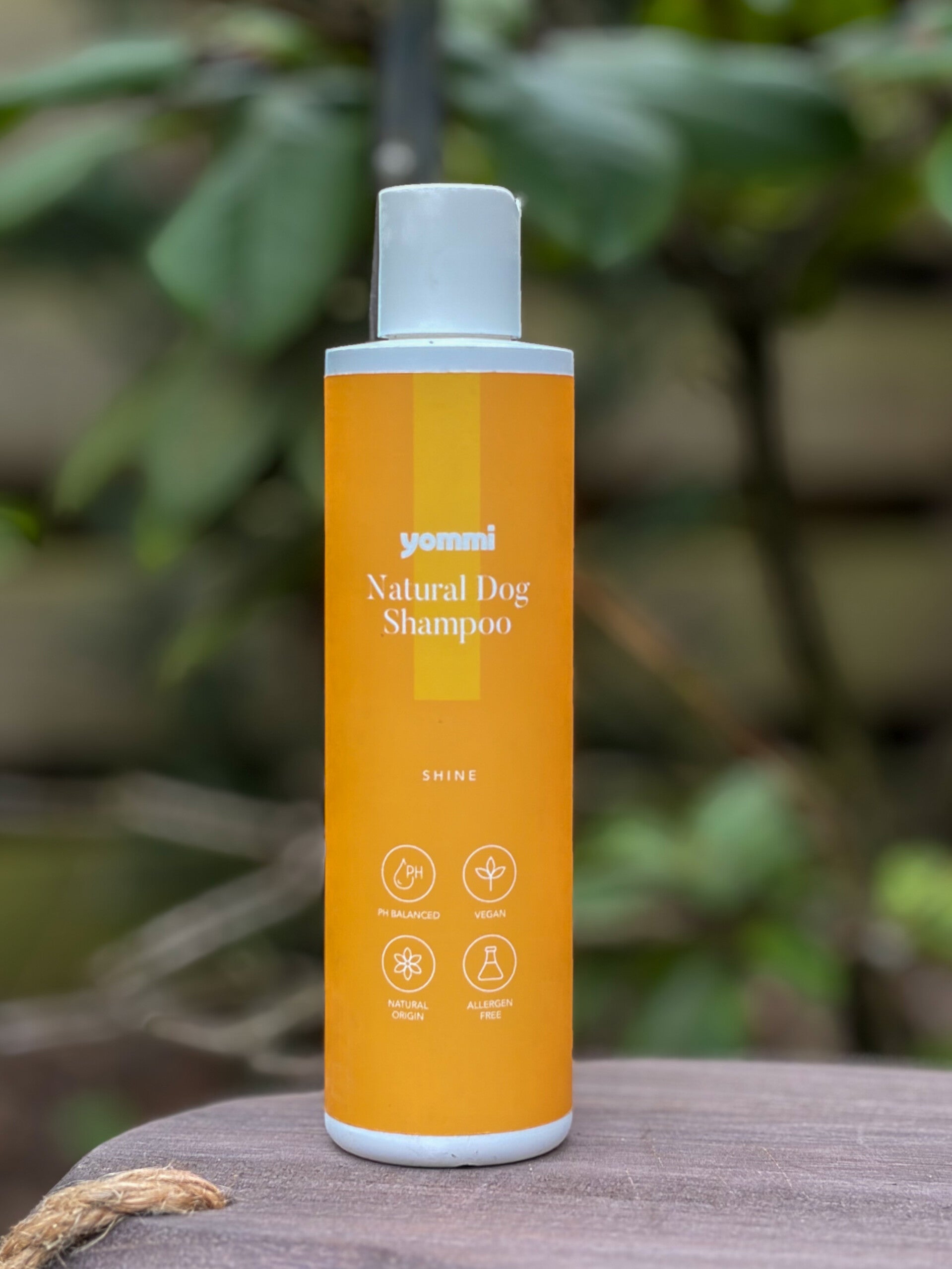 Yommi Natural Dog Shampoo Shine is een pH-gebalanceerde en vegan shampoo die de natuurlijke glans van de vacht versterkt. Ideaal voor doffe of futloze vachten en geschikt voor alle vachttypes.