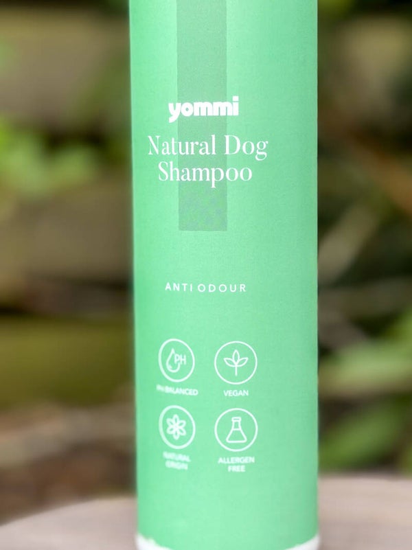 Yommi Natural Dog Shampoo Anti Odour is speciaal ontwikkeld om hardnekkige hondengeuren effectief te neutraliseren zonder de huid uit te drogen. Ideaal na wandelingen in regen, modder of intensief buiten spelen.
