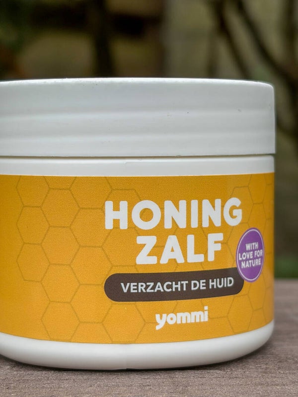 Yommi Honingzalf is een milde, 100% natuurlijke huidverzorgingszalf voor honden, op basis van pure honing en plantaardige oliën. De formule ondersteunt het herstel van de huid bij droogte, schilfering of lichte irritaties. Geschikt voor dagelijks gebruik en volledig veilig bij likken.