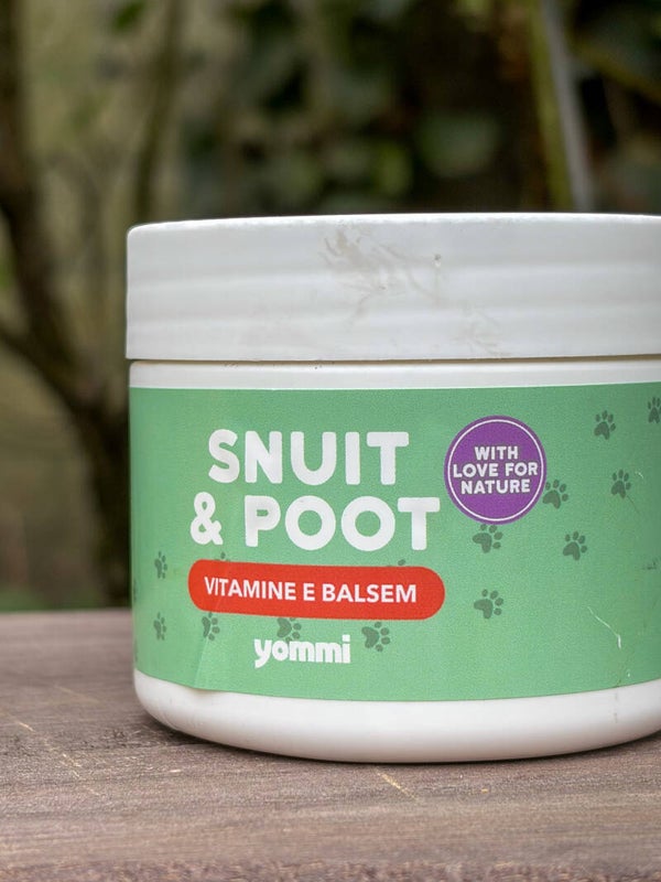 Yommi Neus- & Pootbalsem is een 100% natuurlijke verzorgingsbalsem voor honden, speciaal ontwikkeld voor de gevoelige en droge huid van neus en poten. De formule trekt snel in, laat geen vetlaag achter en is veilig bij eventueel likken. Geschikt voor dagelijks gebruik ter ondersteuning van herstel en bescherming van de huid.